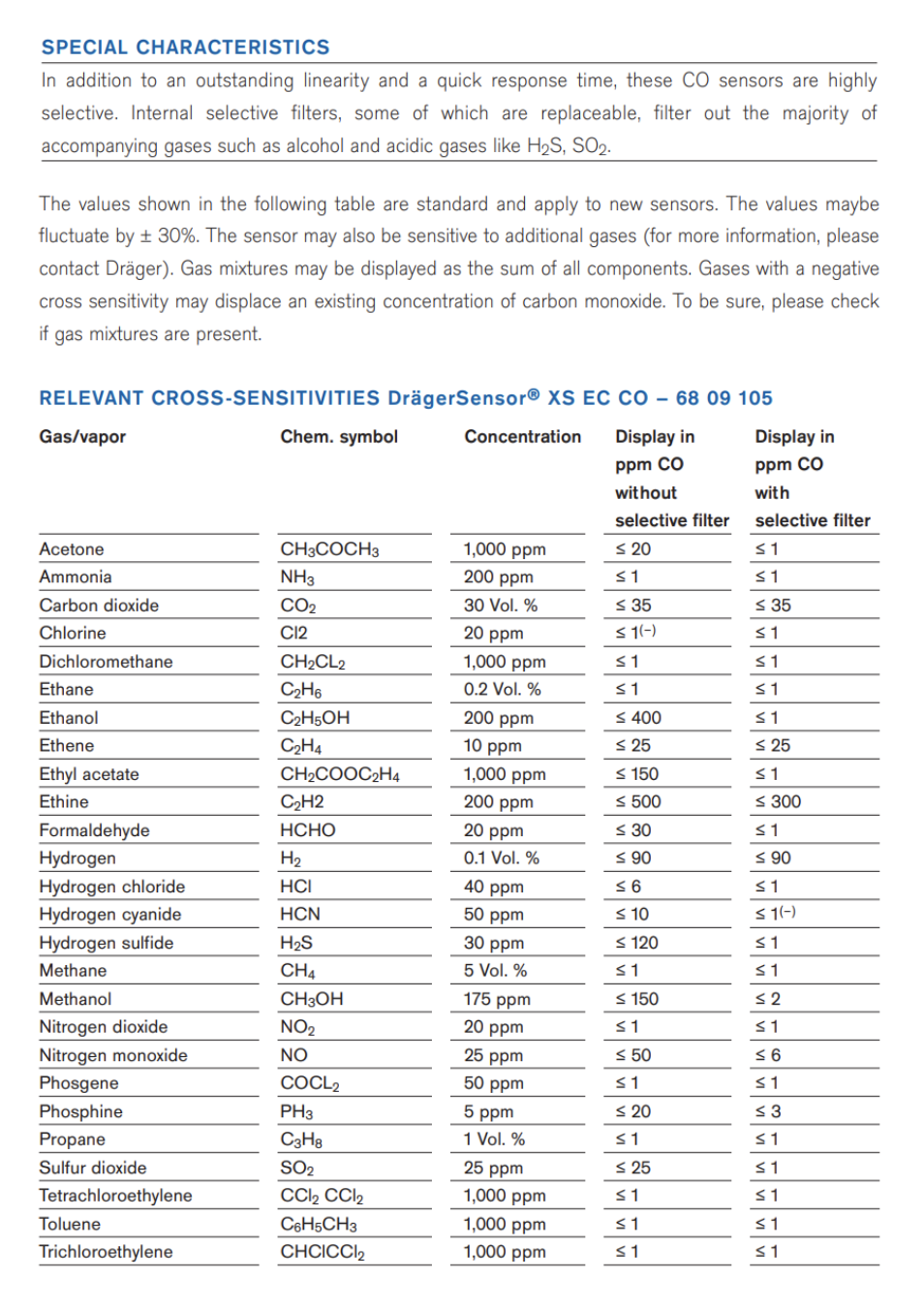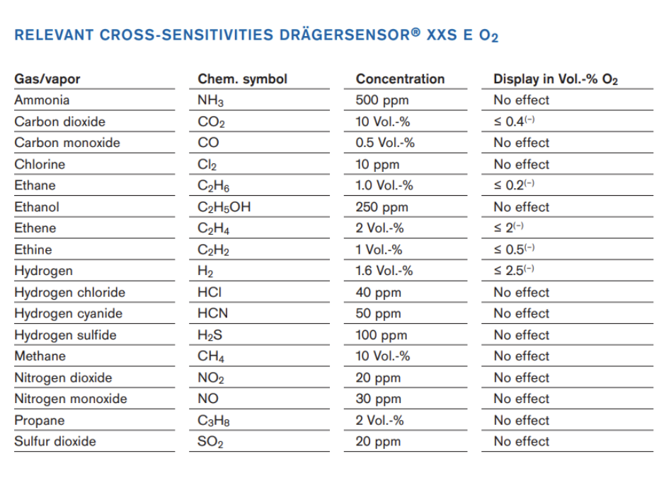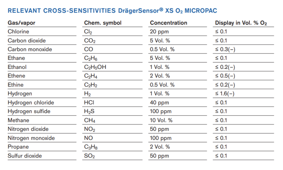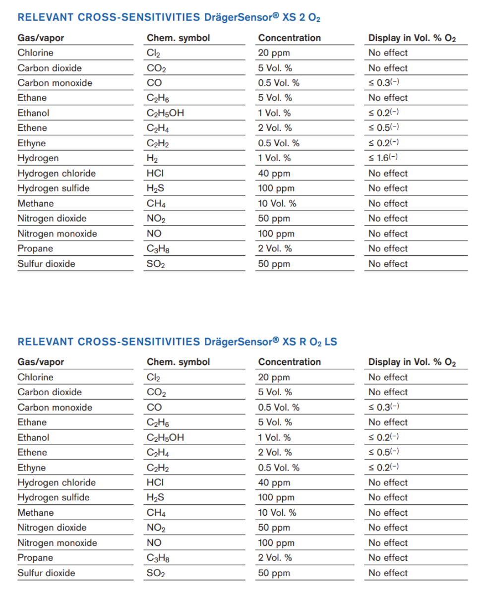 Dräger Monitor Cross Sensitivity Charts