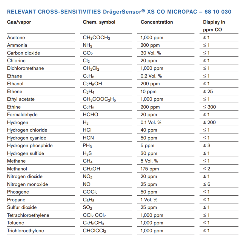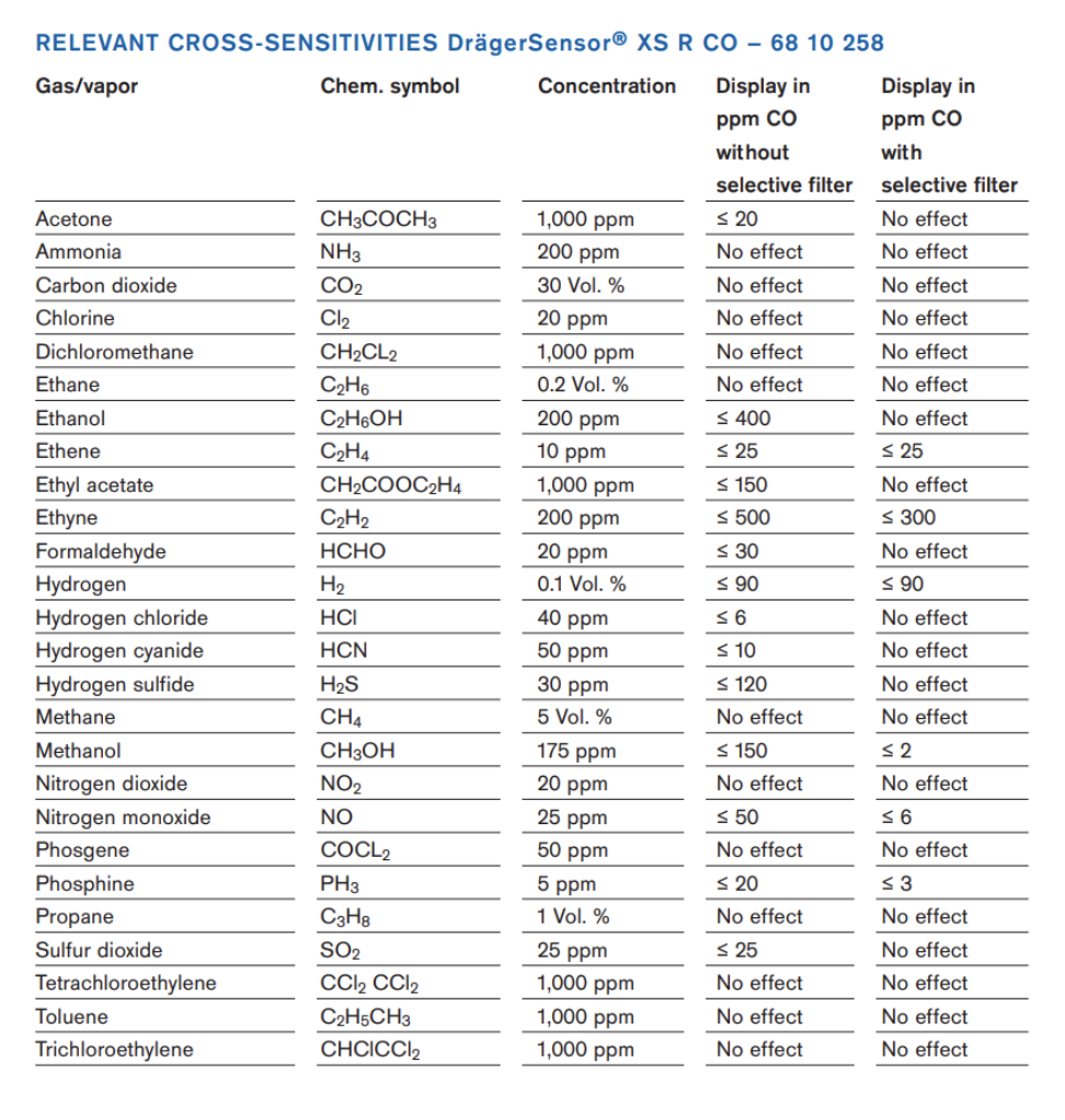 CO Sensor Cross Sensitivity