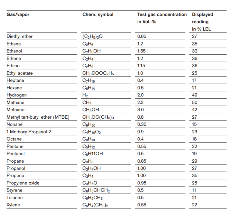 LEL Sensor Cross Sensitivities