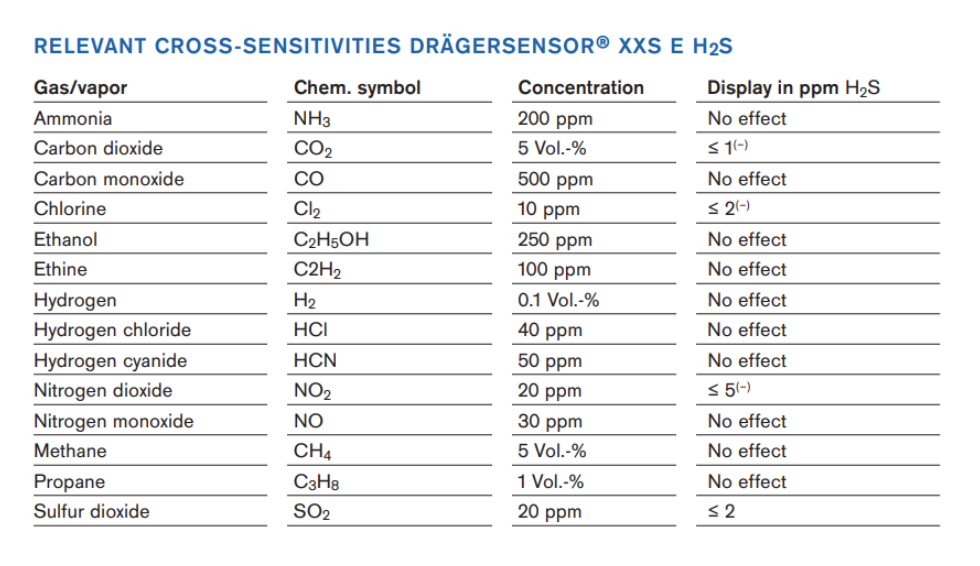 H2S Sensor Cross Sensitivity